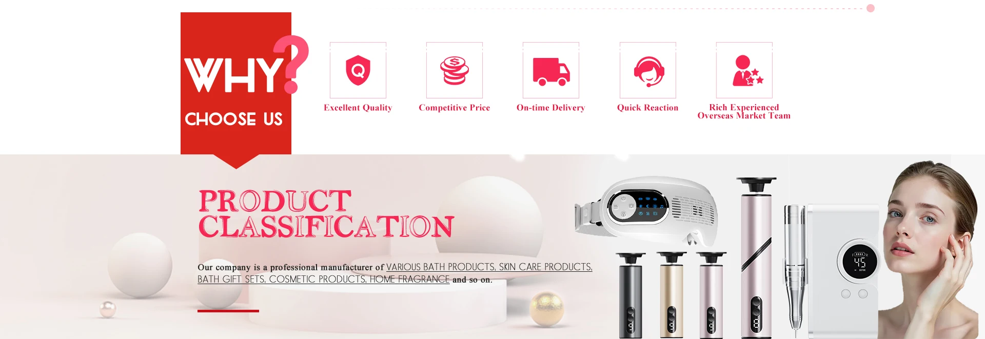 Productos principales:Dispositivos de elevación de cuello facial, masajeadores portátiles, dispositivos de uñas, dispositivos de cuidado del cabello, dispositivo de adelgazamiento corporal
